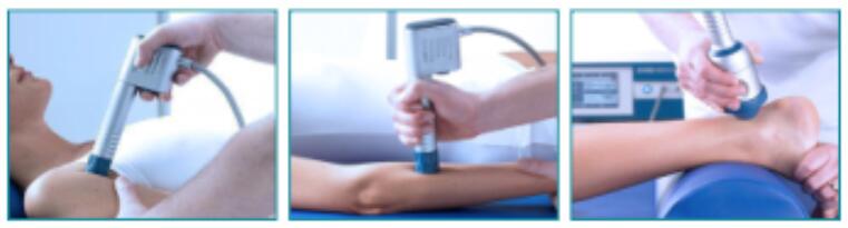 体外冲击波是-种通过物理学机制介质(空气或气体)传导的机械性脉冲压强波,该设备将气动产生的脉冲声波转换成精确的弹道式冲击波,子弹在压缩空气的驱动下加速,获得动能传递给导子,并转化为脉冲形式的能量波进入人体组织,通过治疗探头的定位和移动,覆盖疼痛区域,作用于激痛点及其周围进行治疗。